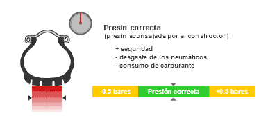 Una presión correcta es esencial para la seguridad, el confort y la longevidad de los neumáticos. Por lo que es importante respetar las presiones recomendadas por los constructores.